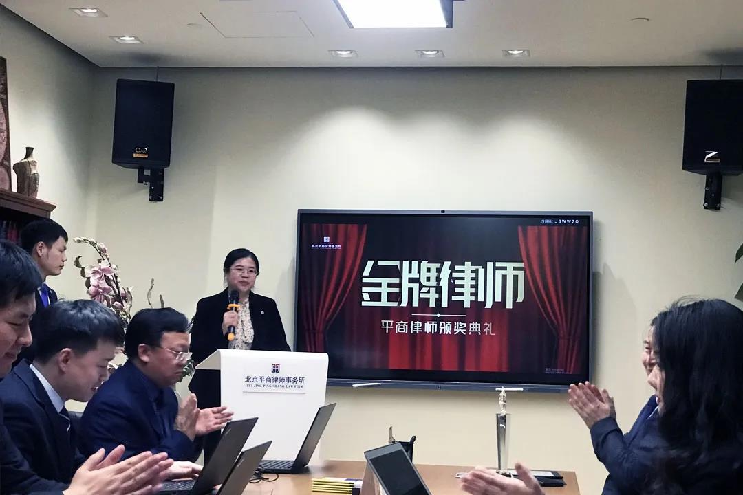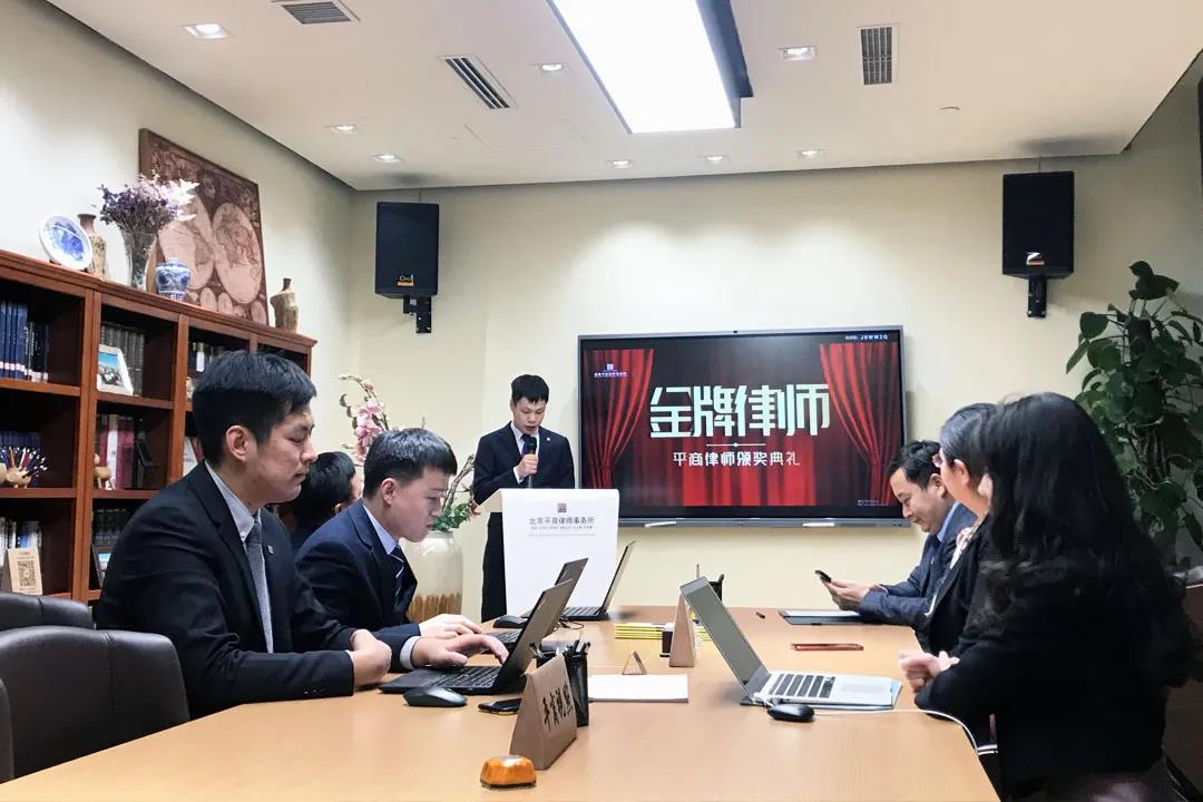 2021年1月19日,北京平商律师事务所举行胜诉案件“金牌律师”颁奖典礼,出席典礼的嘉宾有北京平商律师事务所主任陈波律师、副主任姜珊律师、高级顾问张家盛老师、技术秘密纠纷案件承办团队以及律所的各位同事。