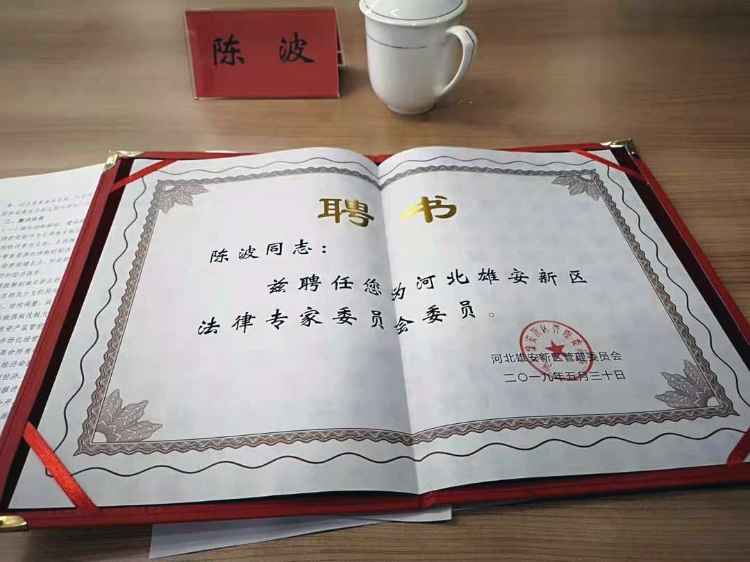 北京平商所陈波律师入选雄安新区法律专家委员会委员