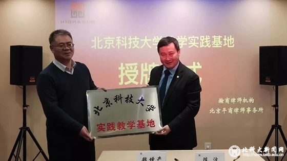 魏增产代表校方授予北京平商律师事务所为“北京科技大学实践教学基地”。